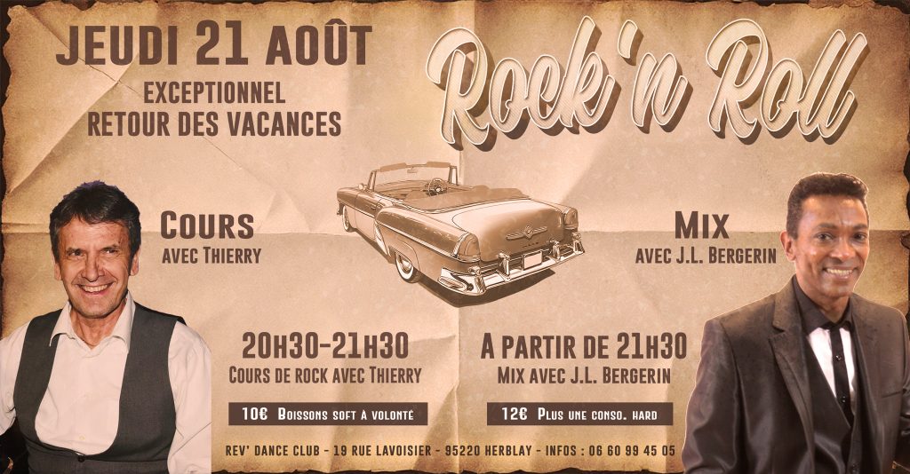 Jeudi 21 août 2025 – Rock retour des vacances – cours + soirée rock avec DJ J.L. Bergerin & Thierry