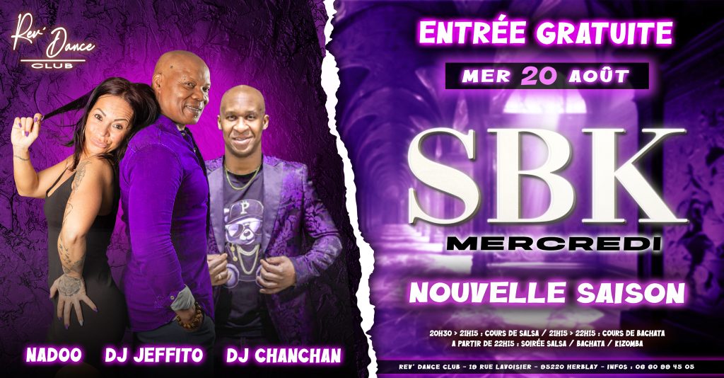 Mercredi 20/08/2025 – Mercredi SBK – ENTREE GRATUITE – Nadoo & DJ Jeffito & DJ Chanchan